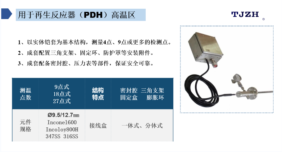 天津市中環(huán)溫度儀表有限公司發(fā)布的新產(chǎn)品是再生反應器(PDH)高可靠性柔性多點熱電偶。