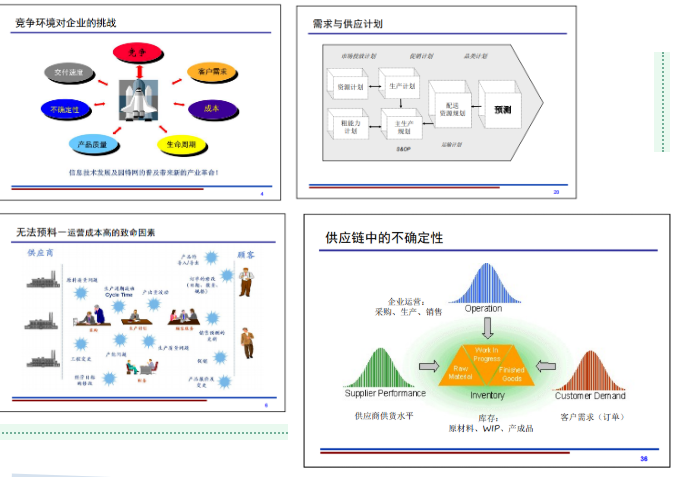 史老師從企業在經營上經常遇到的問題入手,分析了運營成本高的致命因素,指出供應鏈管理的核心問題就是在提供超常的客戶價值上幫助企業創造競爭優勢。在內部供應鏈部分,史老師犀利的指出,傳統的內部供應鏈沒有用系統和整體的視角產生總體相關價值。外部供應鏈部分,他指出,從供應商到制造商、到配送、到最終用戶,各個環節信息的畸變,導致需求的難以預測,不能讓生產者對庫存、產能等做出準確的判斷。因此需要一套技術環境,來集成“需方”和“供方”的流程,從而減少庫存水平、縮短供應鏈周期、降低供應鏈成本。史老師在課堂上還分享了戰略尋源管理、供應商管理總流程,還向大家展示了通過功能和戰略兩個層面的聯盟達到改進與客戶伙伴關系的方法。對于供應鏈中的一些不確定性,史老師也從評估風險發生可能性、識別風險來源和評估風險影響等幾個角度講解,并給出了風險管理的策略和應對供應鏈風險的反應機制。最后史老師用典型案例詮釋了什么是最佳的供應鏈管理。