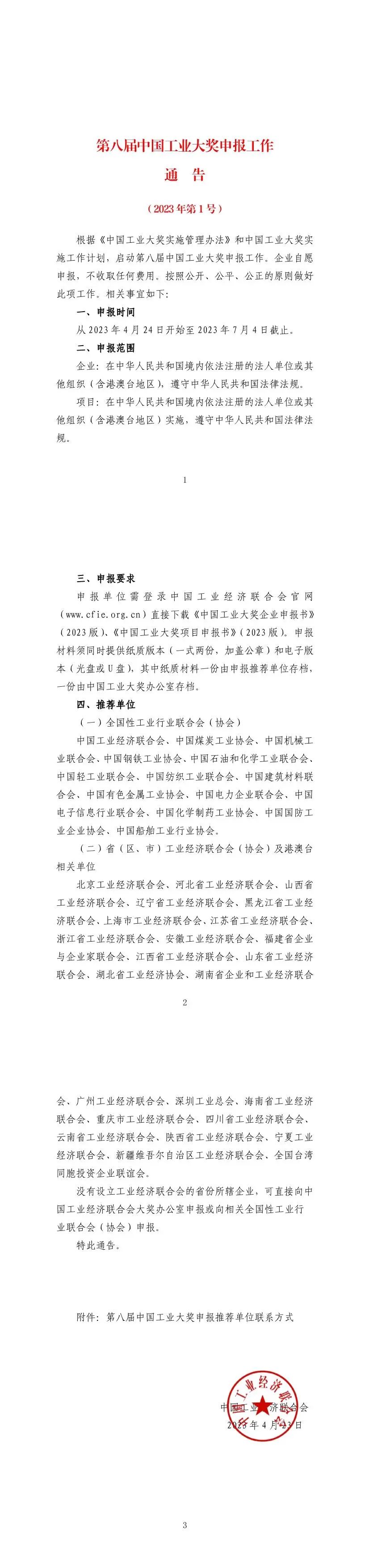 第八屆中國工業大獎申報工作通告