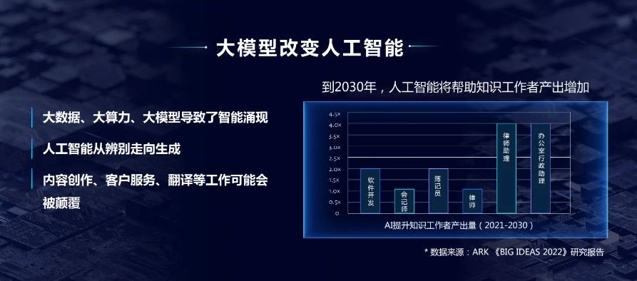 我今天給大家?guī)淼念}目叫做《大模型改變?nèi)斯ぶ悄堋?。剛才龔克也講了,人工智能在過去這半年當(dāng)中,受到的關(guān)注度比以前高了很多,最主要的是因為出現(xiàn)了生成式的人工智能。而生成式人工智能底層技術(shù),實際上就是大模型。