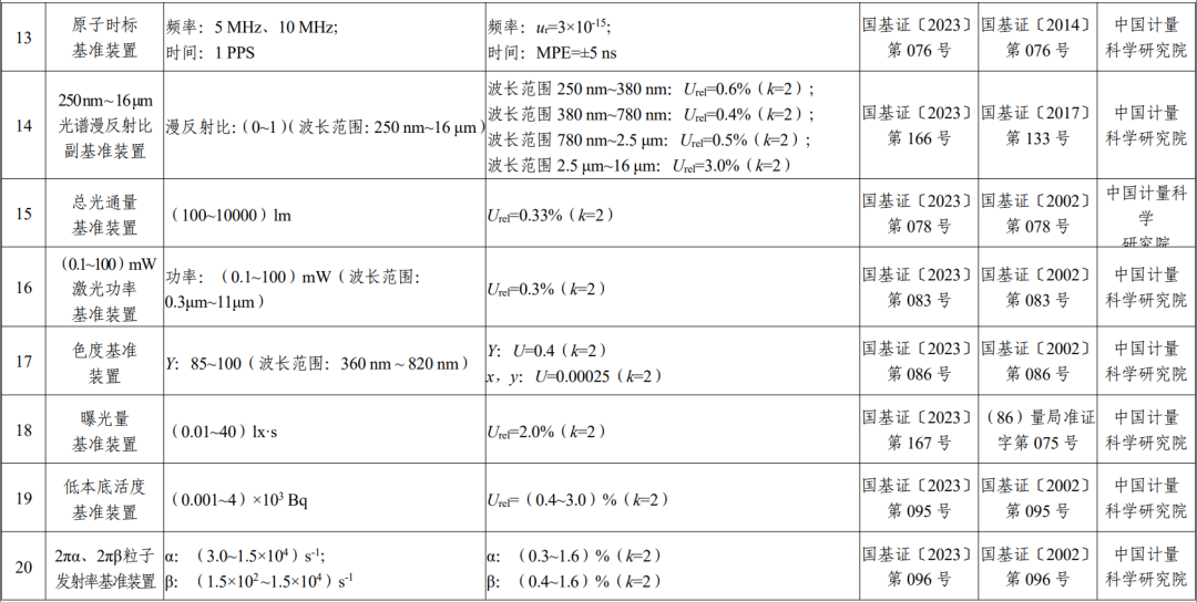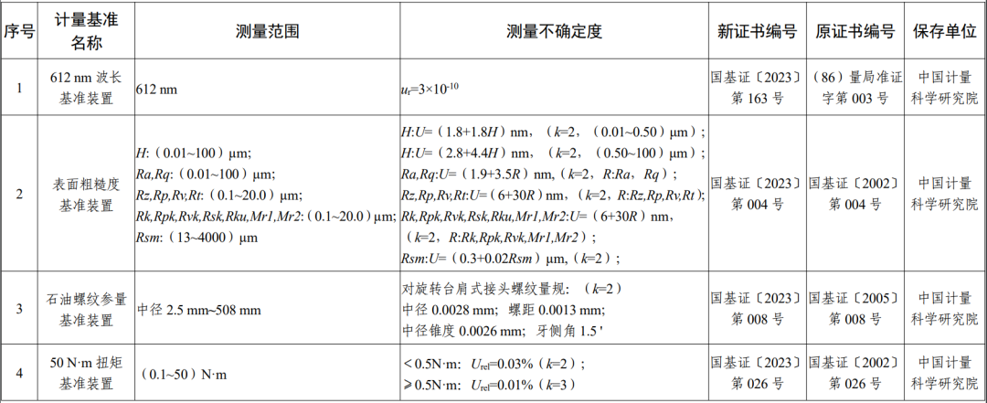 7月7日,國家市場監督管理總局發布關于批準23項國家計量基準技術能力提升的公告,批準“612nm波長基準裝置”“表面粗糙度基準裝置”等23項國家計量基準技術能力提升,頒發新的國家計量基準證書,撤銷相應的原國家計量基準證書。具體如下。