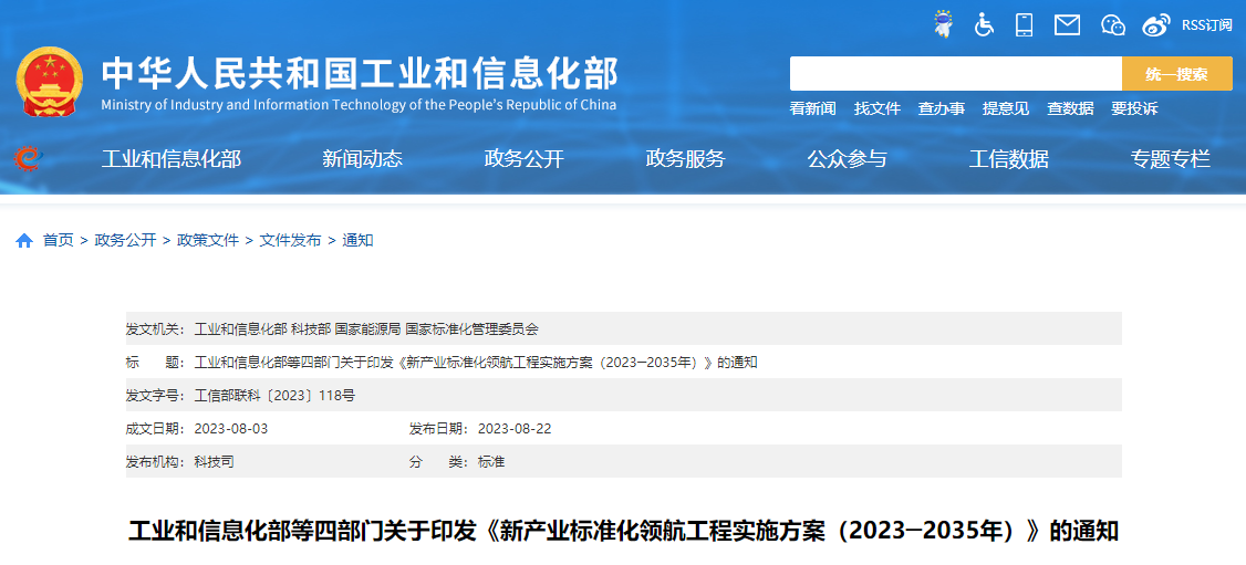 工業和信息化部等四部門關于印發《新產業標準化領航工程實施方案(2023─2035年)》的通知