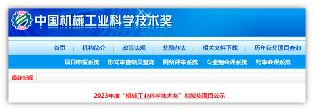 “機械工業科學技術獎”