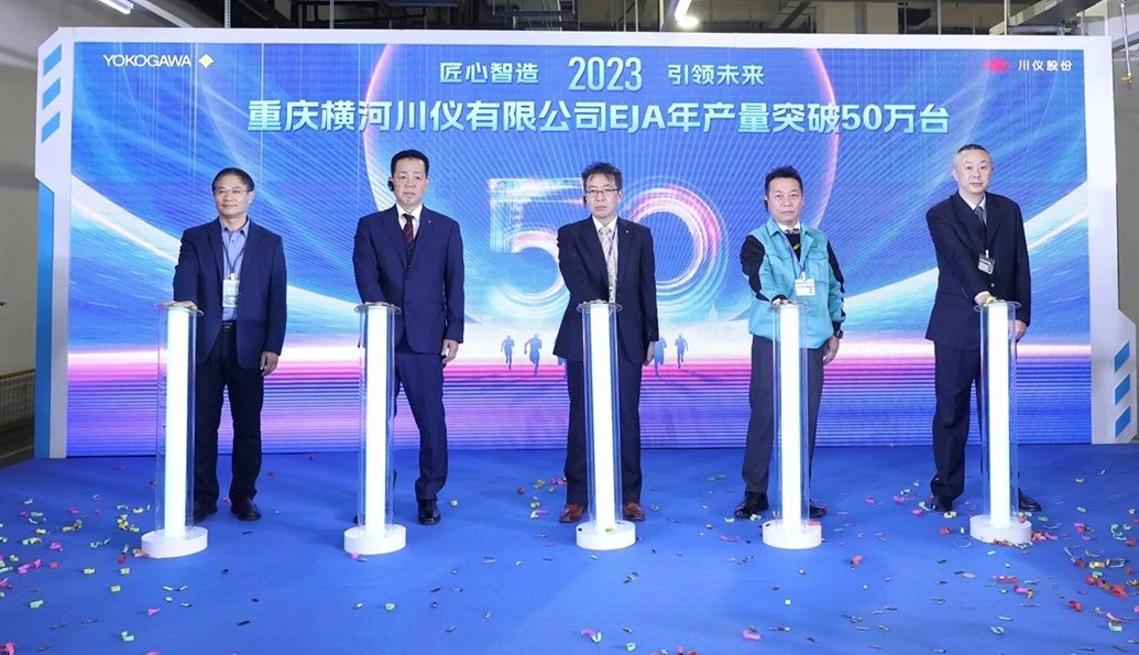 2023年12月11日,重慶橫河川儀有限公司(以下簡稱:橫河川儀)在重慶舉辦“EJA系列智能變送器年產量突破50萬臺”慶典活動。重慶橫河川儀有限公司總經理黑沢亮、制造本部長瞿文光,橫河制造株式會社生產統括本部長杉田淳二,以及供應商代表江蘇南洋中京科技有限公司總經理汪磊等嘉賓出席并致辭。