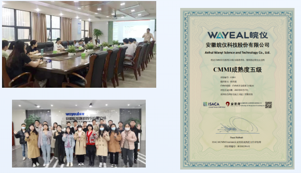 2023年,評(píng)估團(tuán)隊(duì)通過(guò)研發(fā)項(xiàng)目文檔檢查、成員訪談、項(xiàng)目介紹及演示等方法,詳細(xì)對(duì)公司的軟件開(kāi)發(fā)過(guò)程的運(yùn)行情況進(jìn)行了全面考核及評(píng)估后,最終認(rèn)定皖儀科技軟件能力成熟度和項(xiàng)目管理水平符合CMMI5級(jí)認(rèn)證標(biāo)準(zhǔn)要求。