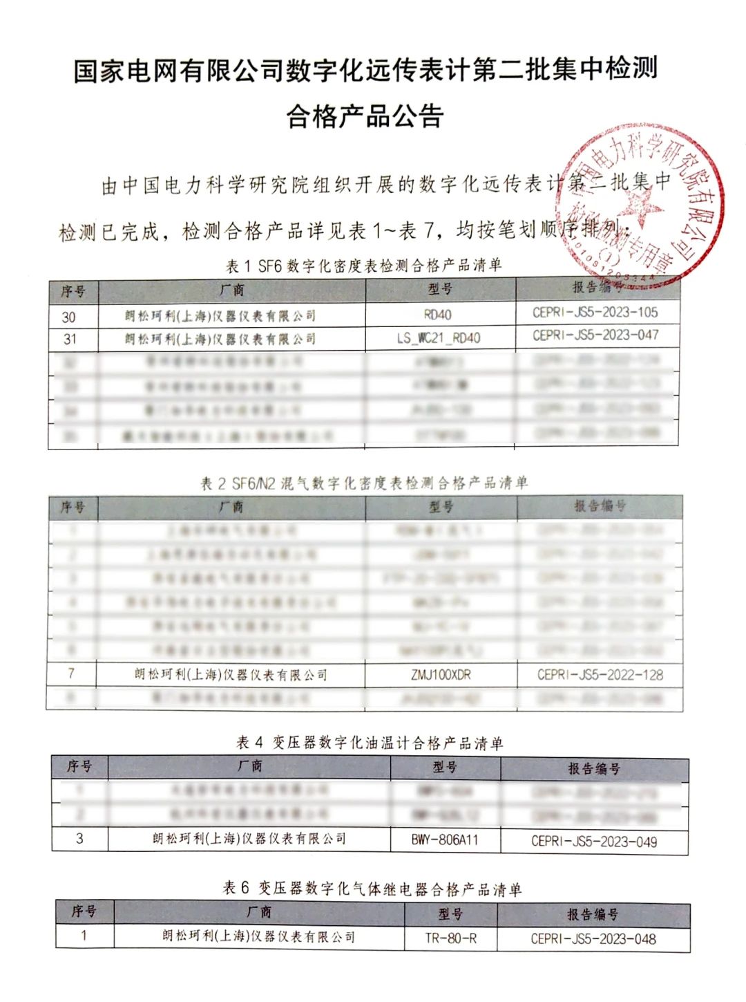 朗松珂利作為專(zhuān)業(yè)數(shù)字化遠(yuǎn)傳表計(jì)生產(chǎn)廠家再次參與其中,并且多種數(shù)字化遠(yuǎn)傳表計(jì)均一次性通過(guò)了統(tǒng)一檢測(cè)。此次送樣產(chǎn)品種類(lèi)較多,覆蓋較廣,包含有線SF6數(shù)字化密度表、無(wú)線SF6數(shù)字化密度表、SF6/N2混合氣體數(shù)字化密度表、變壓器數(shù)字化油溫計(jì)和變壓器數(shù)字化氣體繼電器等。
