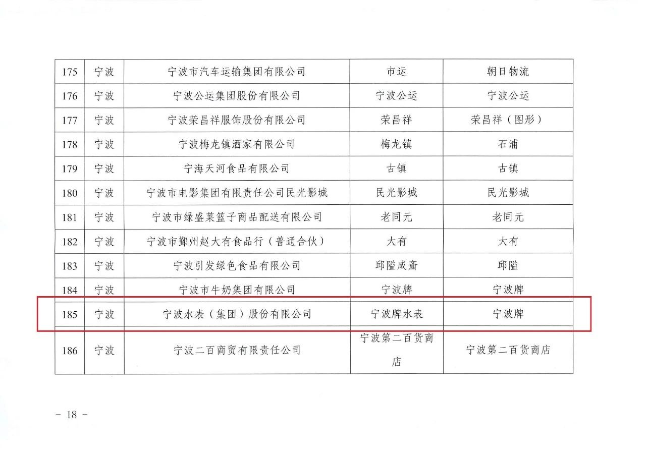 浙江省商務廳等四部門近日發布的前六批“浙江老字號”復核名單及第七批“浙江老字號”認定結果顯示,“寧波”牌水表順利通過復核。