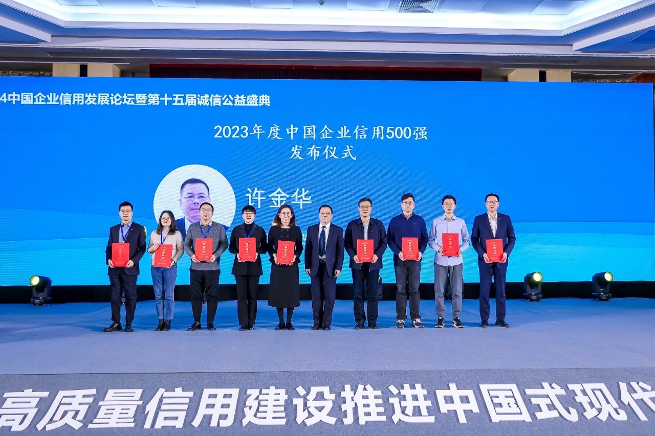 1月21日,2024中國企業(yè)信用發(fā)展論壇暨第十五屆誠信公益盛典在北京成功召開。中國企業(yè)改革與發(fā)展研究會常務(wù)副會長許金華在論壇上發(fā)布了2023年度中國企業(yè)信用500強和中國上市公司信用500強。