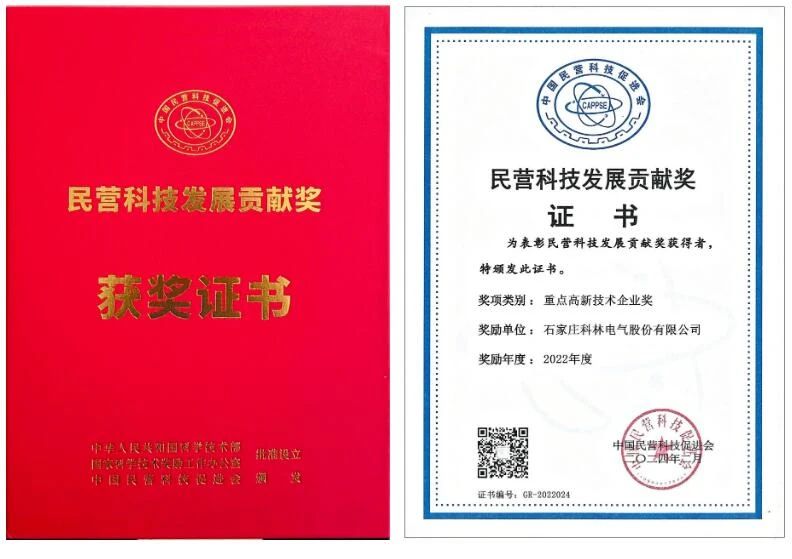 近日,中國民營科技促進會發布了“民營科技發展貢獻獎”獲獎名單,石家莊科林電氣股份有限公司榜上有名,榮獲“中國民營科技發展貢獻獎”殊榮,這是對公司長期堅持自主創新、持續推動科技進步所取得成就的權威認可。