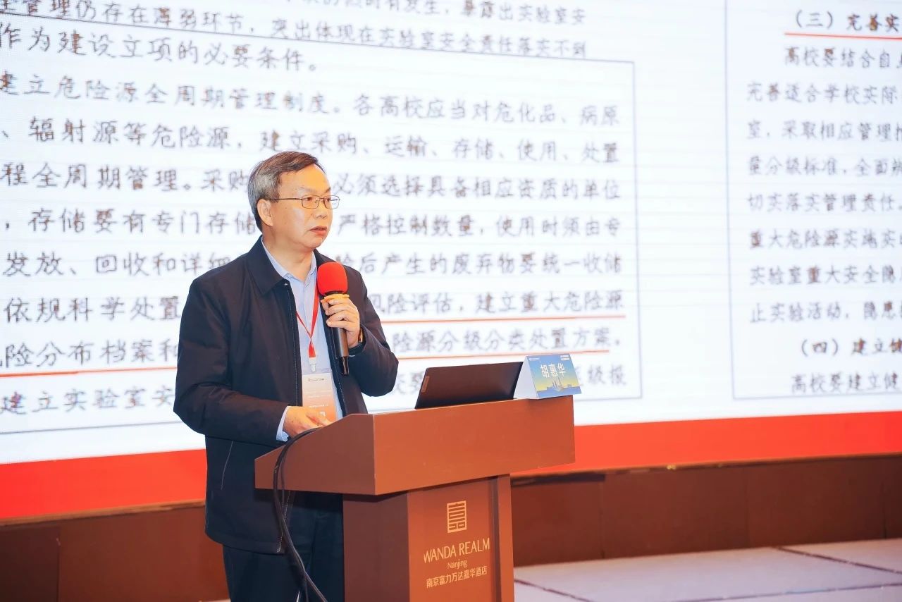 北京理工大學(xué)實(shí)驗(yàn)室與設(shè)備管理處原處長、中國高等教育學(xué)會實(shí)驗(yàn)室管理工作分會監(jiān)事長、實(shí)驗(yàn)室建設(shè)與安全分會副理事長史天貴,浙江省教育廳校園安全處原處長、一級調(diào)研員胡惠華,東南大學(xué)實(shí)驗(yàn)室與設(shè)備管理處處長、教育部高等學(xué)校實(shí)驗(yàn)室建設(shè)與實(shí)驗(yàn)教學(xué)指導(dǎo)委員會秘書長、中國高等教育學(xué)會實(shí)驗(yàn)室管理工作分會副秘書長熊宏齊,西安交通大學(xué)實(shí)驗(yàn)室管理處處長、中國高等教育學(xué)會實(shí)驗(yàn)室管理工作分會副理事長朱臻,華中科技大學(xué)實(shí)驗(yàn)室與設(shè)備管理處原處長、中國高等教育學(xué)會實(shí)驗(yàn)室分會常務(wù)理事、湖北省高校實(shí)驗(yàn)室工作研究會副理事長兼秘書長、本分會副理事長李震彪,中國礦業(yè)大學(xué)實(shí)驗(yàn)室與設(shè)備管理處處長、中國高等教育學(xué)會實(shí)驗(yàn)室管理工作分會常務(wù)理事、技術(shù)安全部副部長、煤炭高等教育實(shí)驗(yàn)室工作研究會秘書長、本分會副理事長吳祝武,無錫賽弗安全裝備有限公司董事長、實(shí)驗(yàn)室建設(shè)與安全分會副理事長兼秘書長王龍生,揚(yáng)州天輝實(shí)驗(yàn)室裝備環(huán)保工程有限公司董事長、本分會副理事長李躍出席會議并在主席臺就坐。