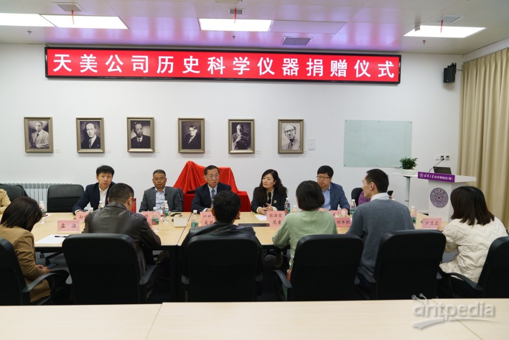 本次捐贈儀式由清華大學科學博物館收藏部負責人、科學史系助理教授劉年凱主持。天美天平總經理練達先生,天美中國總裁付世江先生,九三學社清華大學委員會副主委、清華大學分析中心邢志教授,和清華大學科學博物館館長、科學史系主任吳國盛教授分別發言。