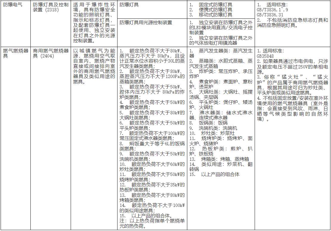 注:CCC認證目錄中“家用燃氣器具”產品大類名稱修改為“燃氣燃燒器具”。