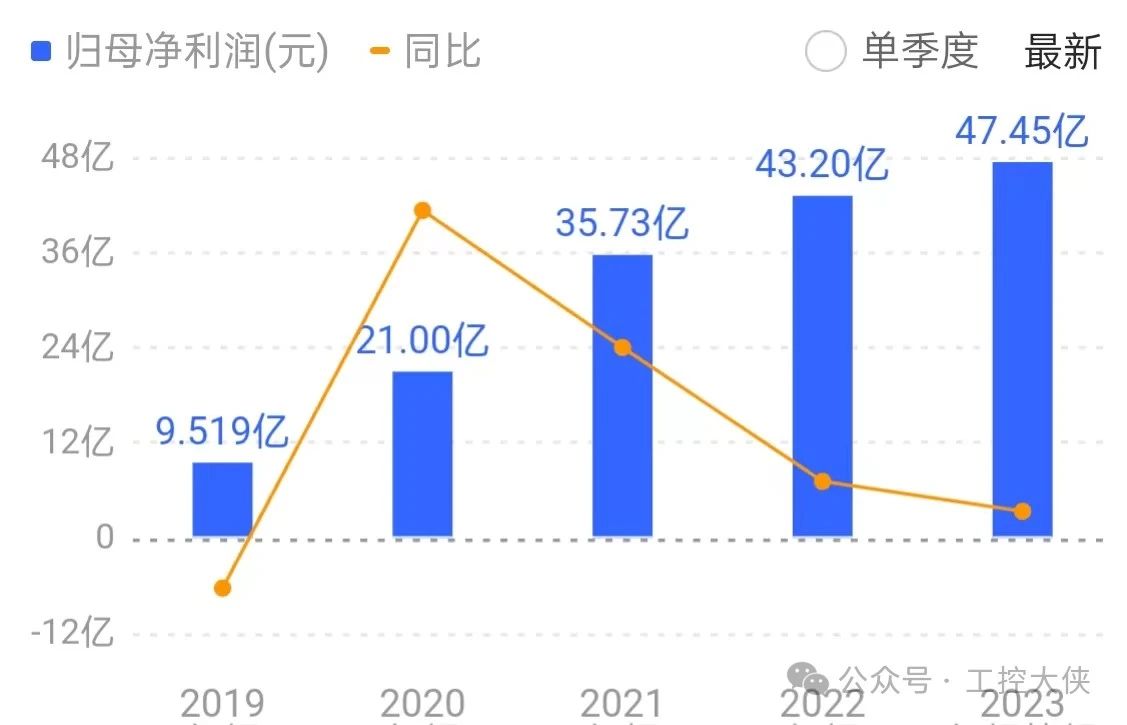 匯川,23財(cái)年凈利潤(rùn)47億元,研發(fā)投入20億元。