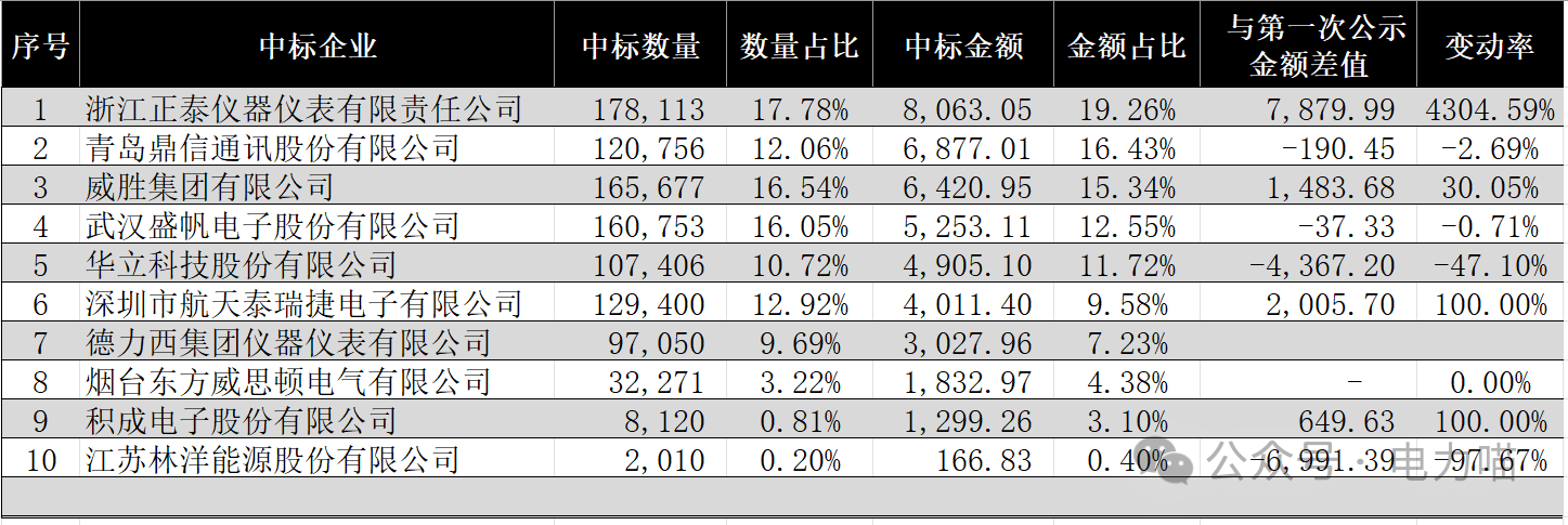 更改后最終公示:總金額41857.65萬元,10家企業中標。