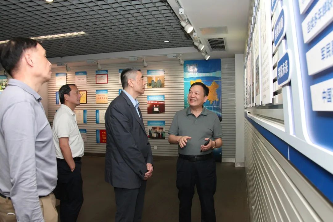 黃訓(xùn)松董事長(右1)向徐念沙會長(右2)介紹公司概況