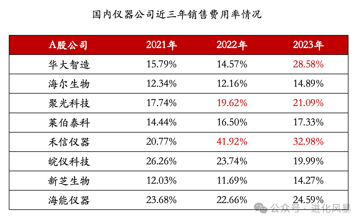 在研發(fā)費(fèi)用高啟的同時(shí),日益增加的市場營銷費(fèi)用成為壓垮公司利潤的最后一根稻草。公司上市后搞大躍進(jìn),把大量的資金投入到各種研發(fā)管線中去,企圖構(gòu)建一個(gè)大而全的儀器帝國,往往資本市場歡迎什么就做什么,同行什么賣得好就做什么,招來的員工會(huì)做什么就做什么,而忽略了企業(yè)定位、戰(zhàn)略角度的考量以及后端資源的匹配性。