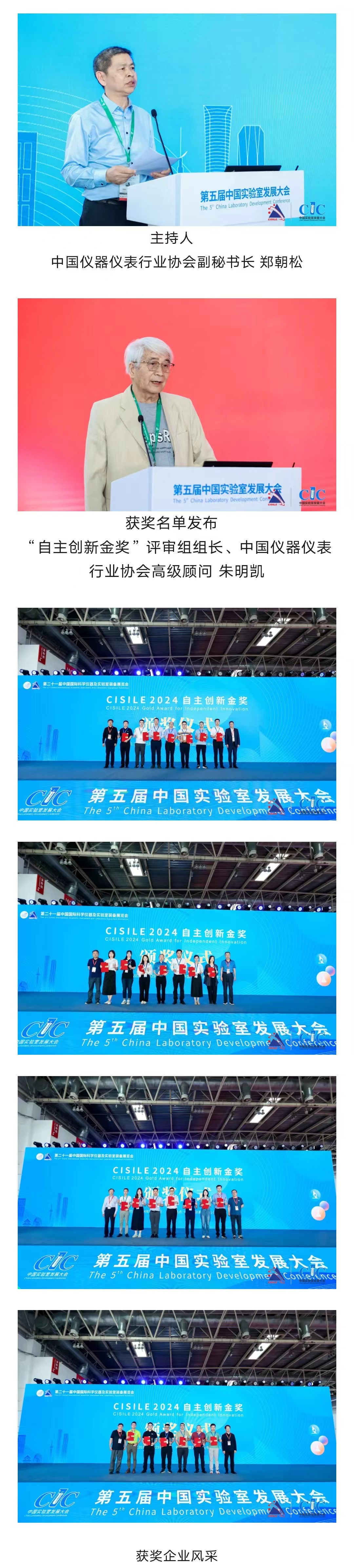 經過數(shù)月的等待,在2024年5月29日,第二十一屆中國國際科學儀器及實驗室裝備展覽會“自主創(chuàng)新金獎”頒獎典禮在北京落下帷幕,共有27家單位攜26個產品獲此殊榮(包含聯(lián)合申報一項),并現(xiàn)場向獲獎單位頒發(fā)了證書和獎杯。