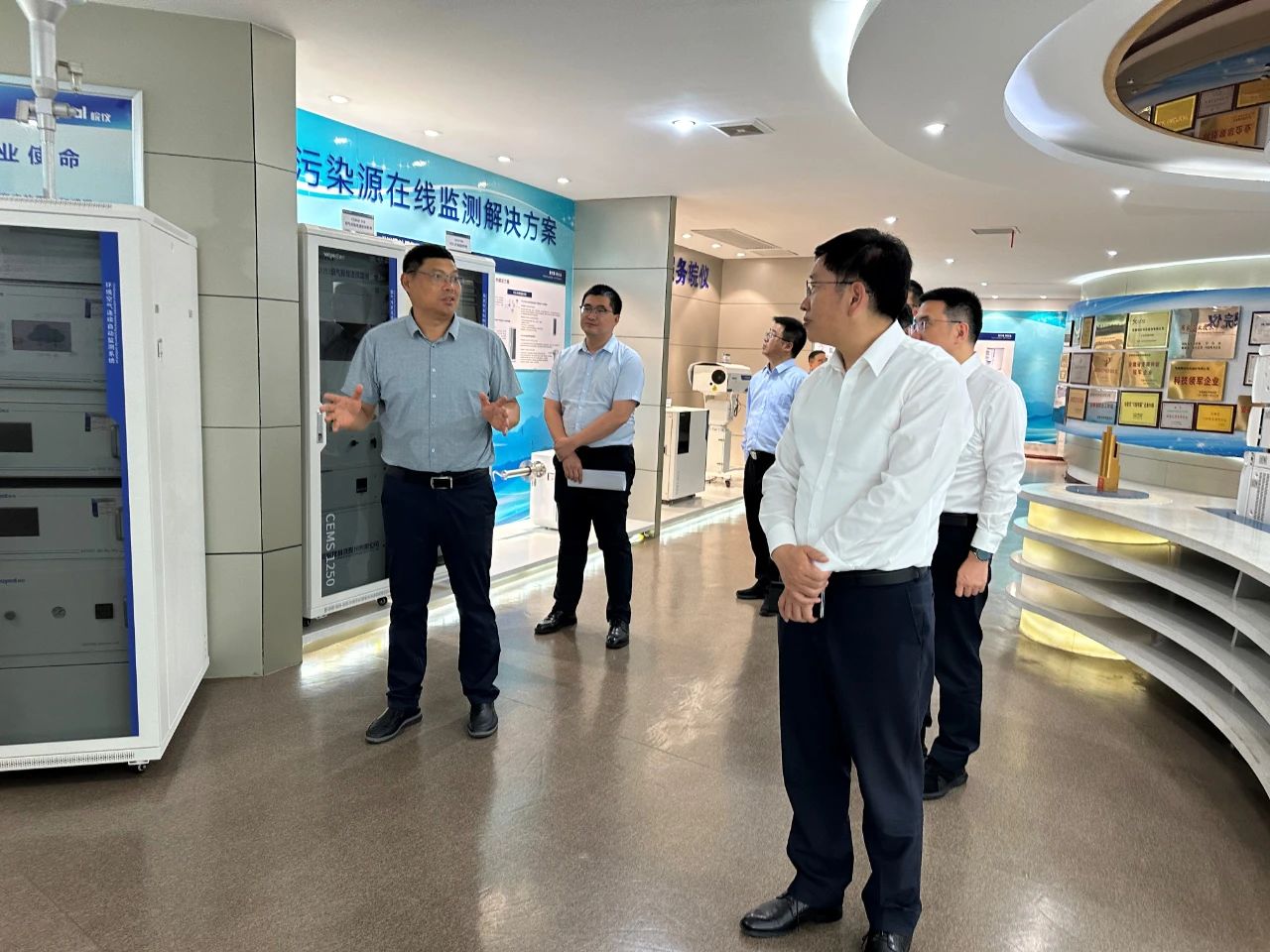 6月3日,國辦督查室正局長級督查專員兼副主任李國周、副處長馮濤、省政府督察主任蔣鴻翔、合肥市市委常委、常務(wù)副市長張泉等一行赴安徽皖儀科技股份有限公司調(diào)研指導(dǎo),皖儀科技董事長臧牧、中心總經(jīng)理王勝芳陪同交流。