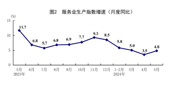 5月份,全國(guó)服務(wù)業(yè)生產(chǎn)指數(shù)同比增長(zhǎng)4.8%,比上月加快1.3個(gè)百分點(diǎn)。分行業(yè)看,信息傳輸、軟件和信息技術(shù)服務(wù)業(yè),租賃和商務(wù)服務(wù)業(yè),交通運(yùn)輸、倉(cāng)儲(chǔ)和郵政業(yè),批發(fā)和零售業(yè)生產(chǎn)指數(shù)同比分別增長(zhǎng)12.9%、8.8%、5.6%、5.0%,分別比上月加快2.1、2.7、1.3和1.5個(gè)百分點(diǎn)。1-5月份,全國(guó)服務(wù)業(yè)生產(chǎn)指數(shù)同比增長(zhǎng)5.0%。1-4月份,規(guī)模以上服務(wù)業(yè)企業(yè)營(yíng)業(yè)收入同比增長(zhǎng)8.2%。5月份,服務(wù)業(yè)商務(wù)活動(dòng)指數(shù)為50.5%;服務(wù)業(yè)業(yè)務(wù)活動(dòng)預(yù)期指數(shù)為57.0%。其中,郵政、電信廣播電視及衛(wèi)星傳輸服務(wù)、互聯(lián)網(wǎng)軟件及信息技術(shù)服務(wù)、文化體育娛樂等行業(yè)商務(wù)活動(dòng)指數(shù)位于55.0%以上較高景氣區(qū)間。