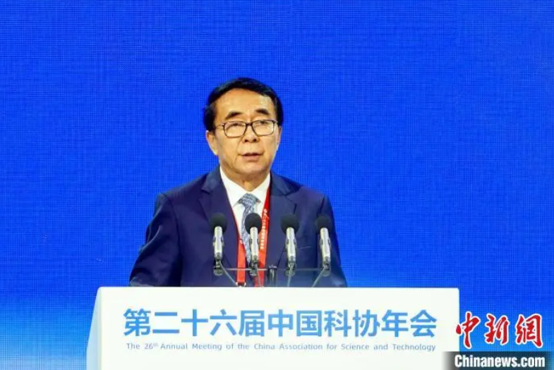 白春禮院士在第二十六屆中國科協年會主論壇上作主旨報告。中新網記者 陳冠言 攝
