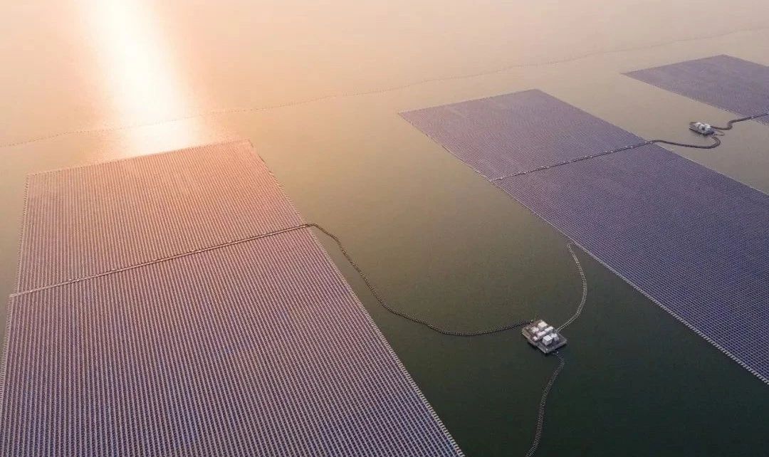 2021年12月,華能德州丁莊水面光伏發電二期項目120兆瓦全容量順利并網發電。加上前期項目一期200兆瓦已經全容量并網發電,總裝機容量達到320兆瓦,為全球單體容量最大的水上漂浮式光伏電站。