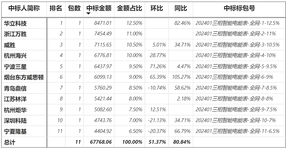 總金額6.78億元,11家企業(yè)實(shí)現(xiàn)中標(biāo),華立中標(biāo)最大包8471.01萬(wàn)元;