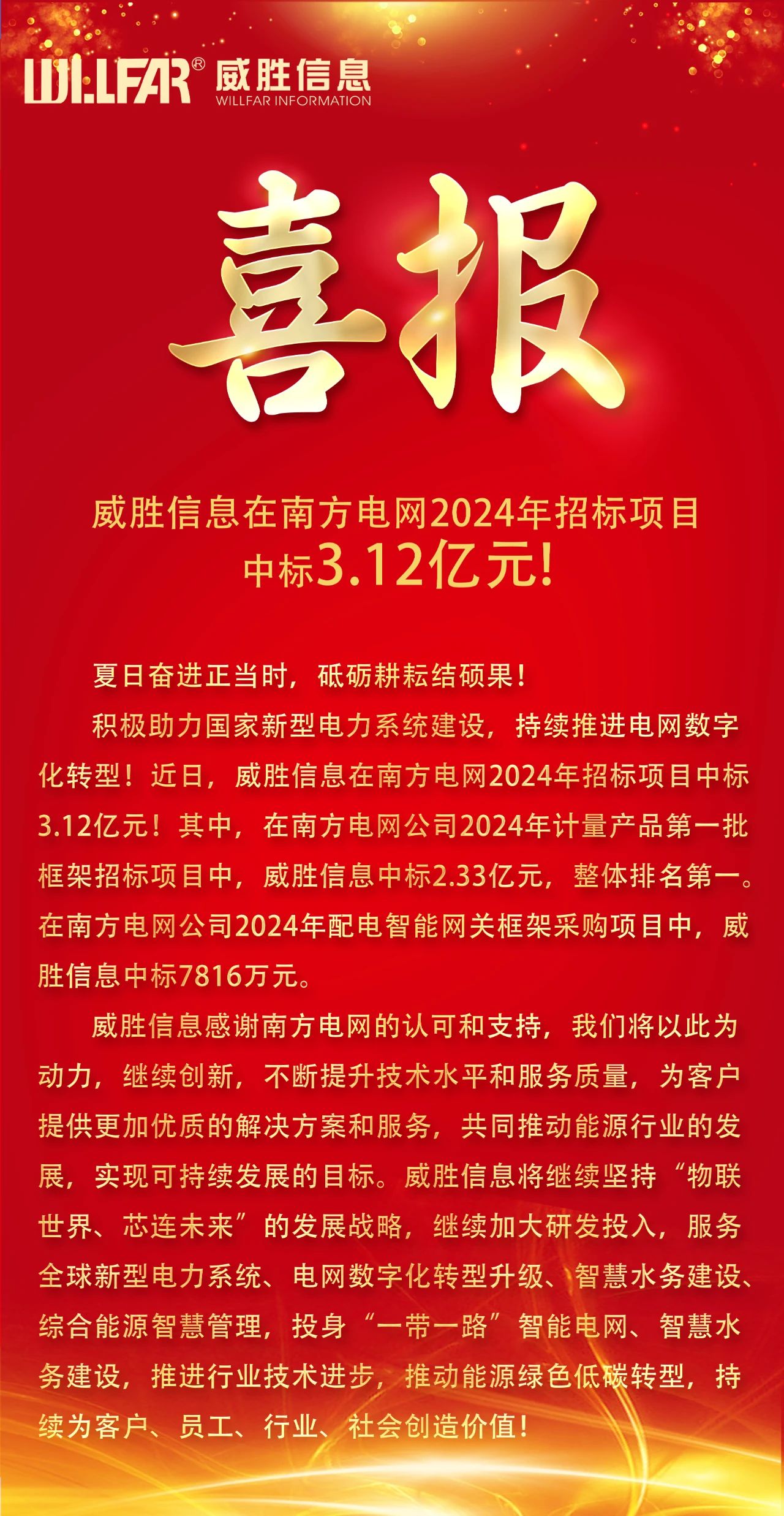 3.12億元!威勝信息中標南方電網2024年招標項