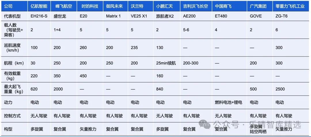 國內eVTOL主機重點企業包括億航智能、小鵬匯天、峰飛航空、吉利沃飛長空、山河智能、御風未來、時的科技、廣汽集團、沃蘭特、零重力飛機工業以及中國商飛等。