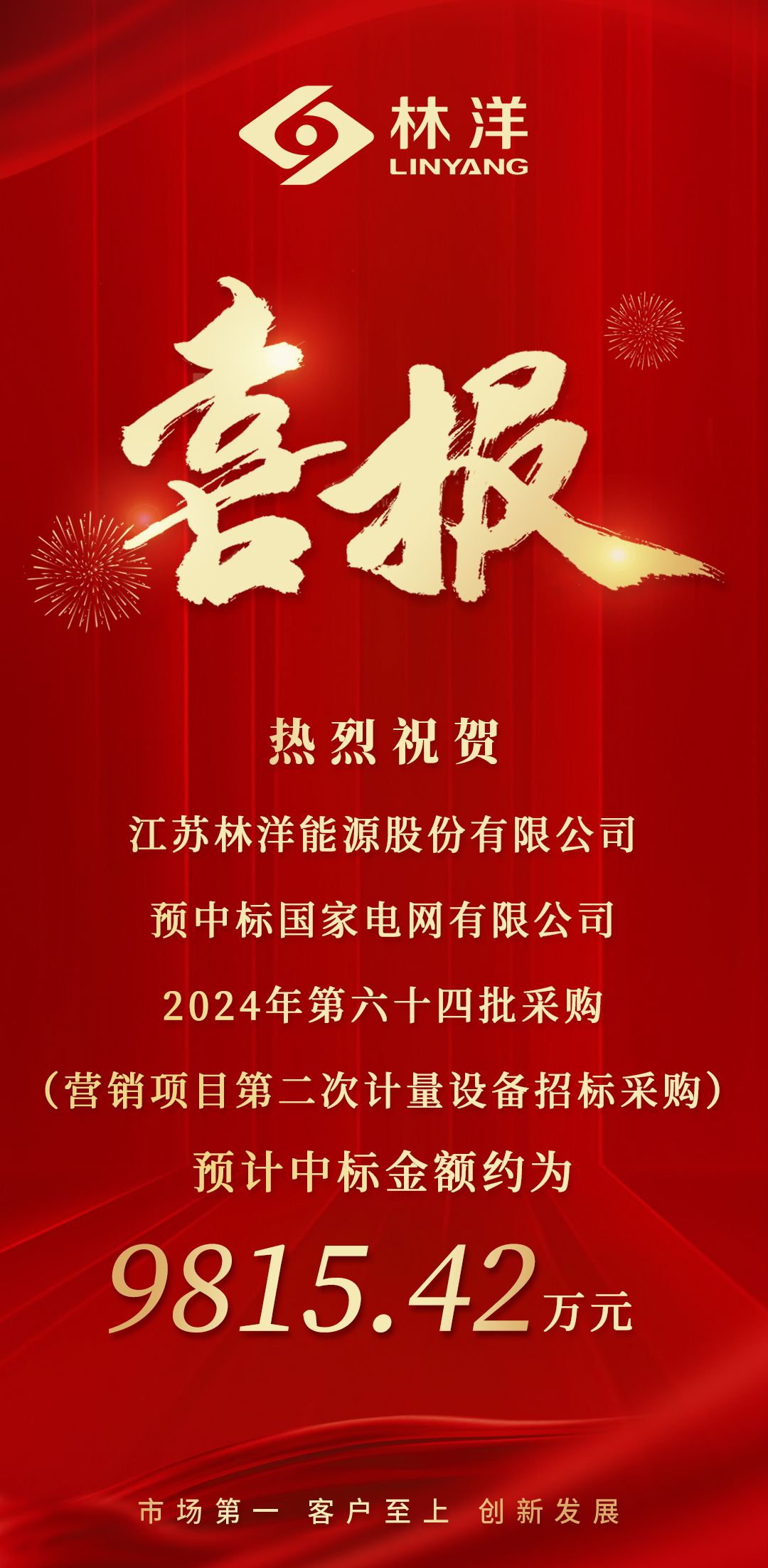 8月29日,林洋能源(601222.SH)發(fā)布公告,預(yù)中標(biāo)國家電網(wǎng)有限公司2024年第六十四批采購(營銷項(xiàng)目第二次計(jì)量設(shè)備招標(biāo)采購)項(xiàng)目,共中6個包,預(yù)計(jì)中標(biāo)金額約為9815.42萬元,這是市場與客戶對林洋產(chǎn)品、品牌以及實(shí)力的信賴與肯定!