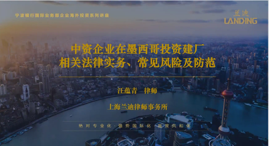 (寧波銀行合作伙伴&蘭迪律師事務所高級合伙人汪蘊青女士)