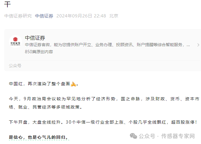 昨日(9月26日)晚間,我國最大的證券機構之一——中信證券,發布僅有一個字的分析文章——《干》,闡述了: