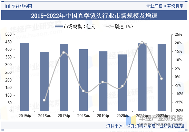 鏡頭是光學儀器的核心部件,20世紀以來光電子技術的快速發展帶動光學鏡頭的應用范圍從最初的顯微鏡、望遠鏡、膠片相機等領域向安防視頻監控、數碼相機/攝像機和智能手機等領域滲透。數據顯示,2022年我國光學鏡頭行業市場規模約為437.49億元,同比減少1.16%。