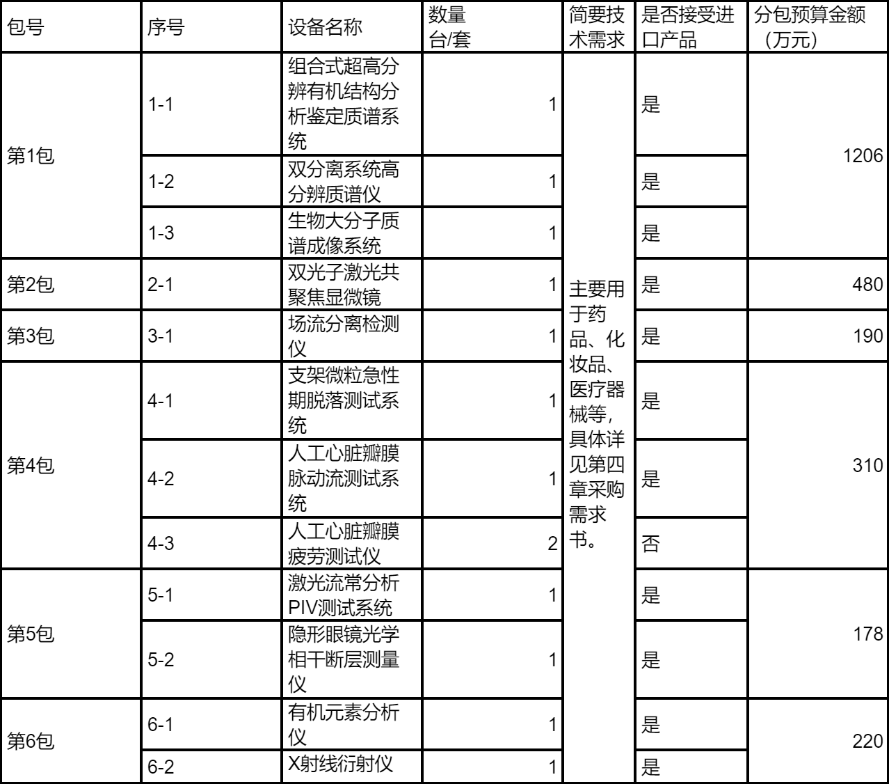 (1)包件1:1-1組合式超高分辨有機(jī)結(jié)構(gòu)分析鑒定質(zhì)譜系統(tǒng):486萬(wàn)元;1-2雙分離系統(tǒng)高分辨質(zhì)譜儀:360萬(wàn)元;1-3生物大分子質(zhì)譜成像系統(tǒng):360萬(wàn)元。