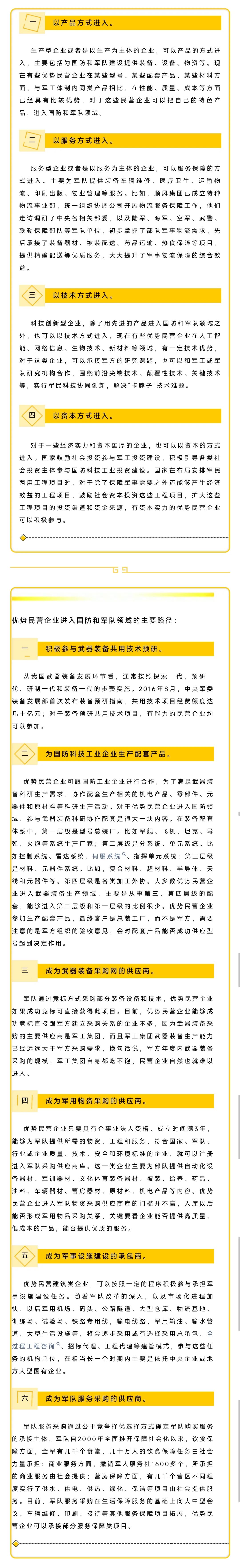優(yōu)勢民營企業(yè)以什么樣的方式進(jìn)入國防和軍隊(duì)建設(shè)領(lǐng)域,應(yīng)當(dāng)根據(jù)企業(yè)自身的實(shí)際具體情況具體分析,注重發(fā)揮自己的優(yōu)勢和特長,選擇相應(yīng)的方式進(jìn)入,具體講,可以從產(chǎn)品、服務(wù)、技術(shù)和資本等方式進(jìn)入。