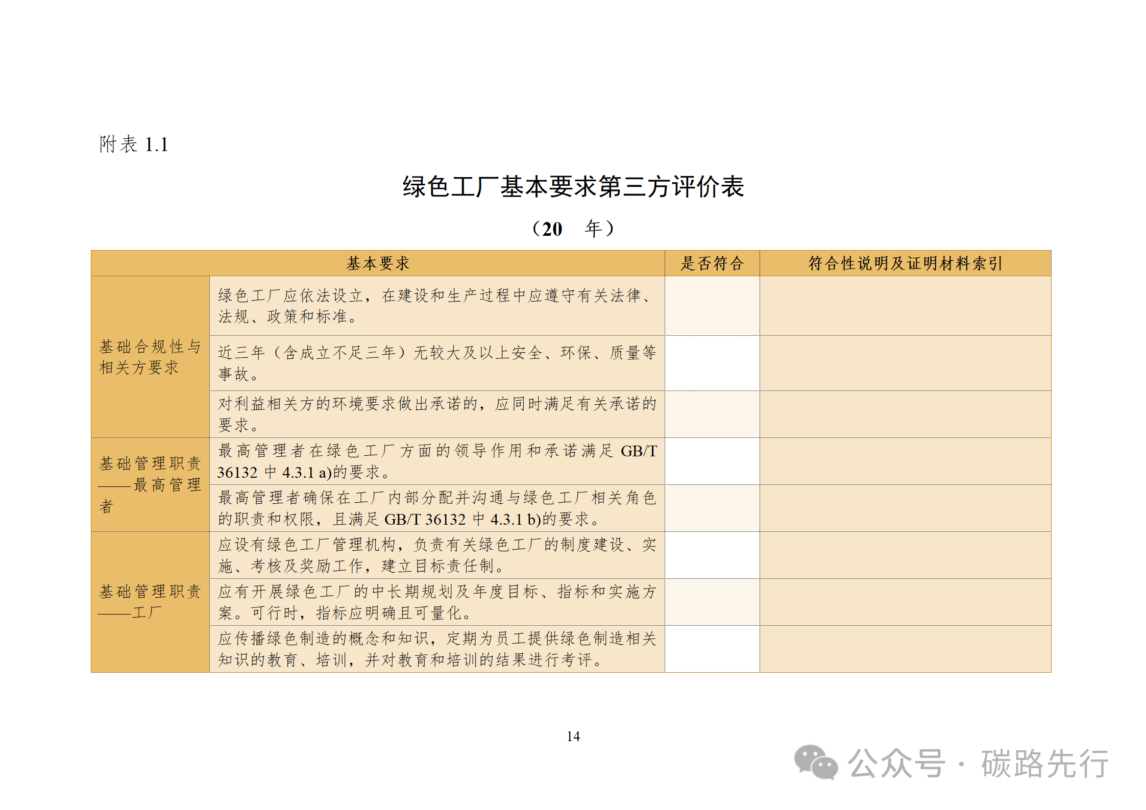 ①綠色工廠基本要求的符合情況;②6個一級指標;③加分項:“零碳”工廠創建方面開展的工作情況。