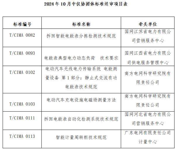 2024年10月 24-25日,中國(guó)儀器儀表行業(yè)協(xié)會(huì)(以下簡(jiǎn)稱“協(xié)會(huì)”) 以視頻會(huì)議形式組織召開了《電能表典型電力動(dòng)態(tài)負(fù)荷 技術(shù)要求》等6項(xiàng)團(tuán)體標(biāo)準(zhǔn)(項(xiàng)目信息詳見附表)送審稿審查會(huì)。來自國(guó)網(wǎng)山東省電力公司電力科學(xué)研究院、廣東電網(wǎng)有限責(zé)任公司計(jì)量中心、中國(guó)電力科學(xué)研究院計(jì)量研究所、國(guó)網(wǎng)浙江省電力有限公司營(yíng)銷服務(wù)中心、廣西電網(wǎng)計(jì)量中心、中國(guó)電力科學(xué)研究院有限公司、國(guó)網(wǎng)河南省電力公司營(yíng)銷服務(wù)中心、國(guó)網(wǎng)山東省電力公司、黑龍江省電工儀器儀表工程技術(shù)研究中心有限公司的九位專家組成審查組,國(guó)網(wǎng)山東省電力公司電力科學(xué)研究院的徐民教授級(jí)高工擔(dān)任組長(zhǎng)。會(huì)議由協(xié)會(huì)副秘書長(zhǎng)程紅主持。協(xié)會(huì)及電工儀表分會(huì)的團(tuán)體標(biāo)準(zhǔn)工作人員、標(biāo)準(zhǔn)主要起草人參加了本次會(huì)議。