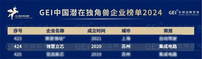 10月24日長城戰(zhàn)略咨詢發(fā)布《中國潛在獨角獸企業(yè)研究報告2024》,領(lǐng)慧立芯上榜。
