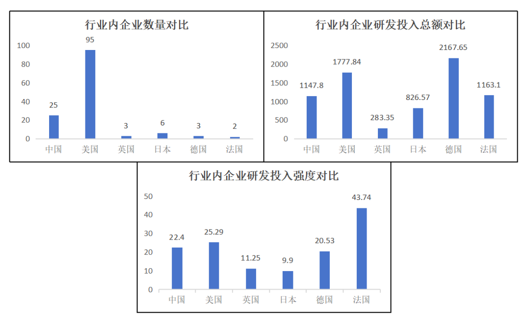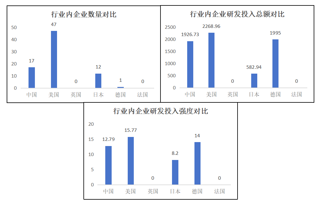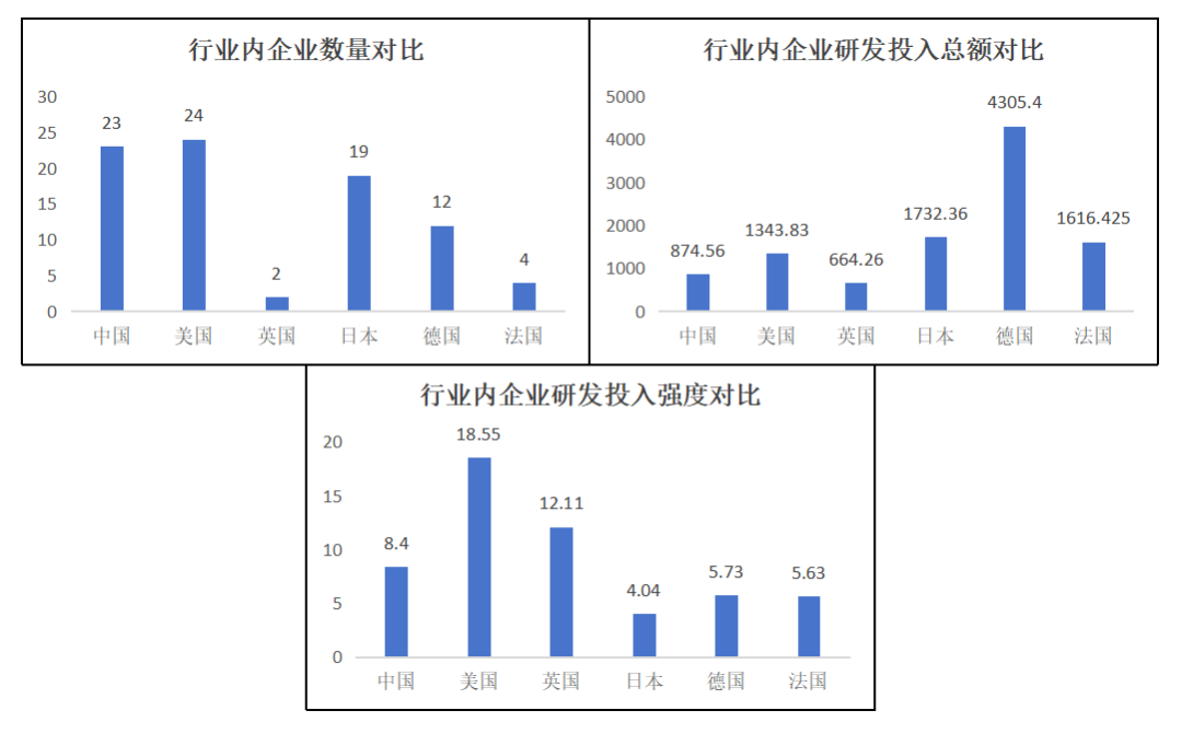 四是汽車和零部件行業上,中國科技領軍企業的數量優勢并不明顯;其平均研發投入總額僅略高于英國,處于較低的水平;其平均研發投入強度則大約處于中等偏上的水平。總之,中國科技領軍企業在汽車和零部件行業上的發展比較一般,體量優勢不明顯,創新水平不高;在平均研發投入總額較低的情況下卻有著較高的平均研發投入強度,更是說明了我國汽車和零部件行業的營收情況不容樂觀。