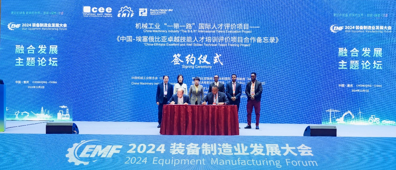在成果發(fā)布環(huán)節(jié),中國機械工業(yè)聯(lián)合會副會長李奇與埃塞俄比亞勞工與技能部工程卓越中心主任韓士蘭博士攜手登臺,共同簽署了《機械工業(yè)“一帶一路”國際人才評價項目——中國-埃塞俄比亞卓越技能人才培訓(xùn)評價項目合作備忘錄》。這不僅標志著中埃兩國在機械工業(yè)領(lǐng)域人才培養(yǎng)與評價合作上邁出了堅實的一步,也譜寫了“一帶一路”倡議下國際技能合作的新篇章。