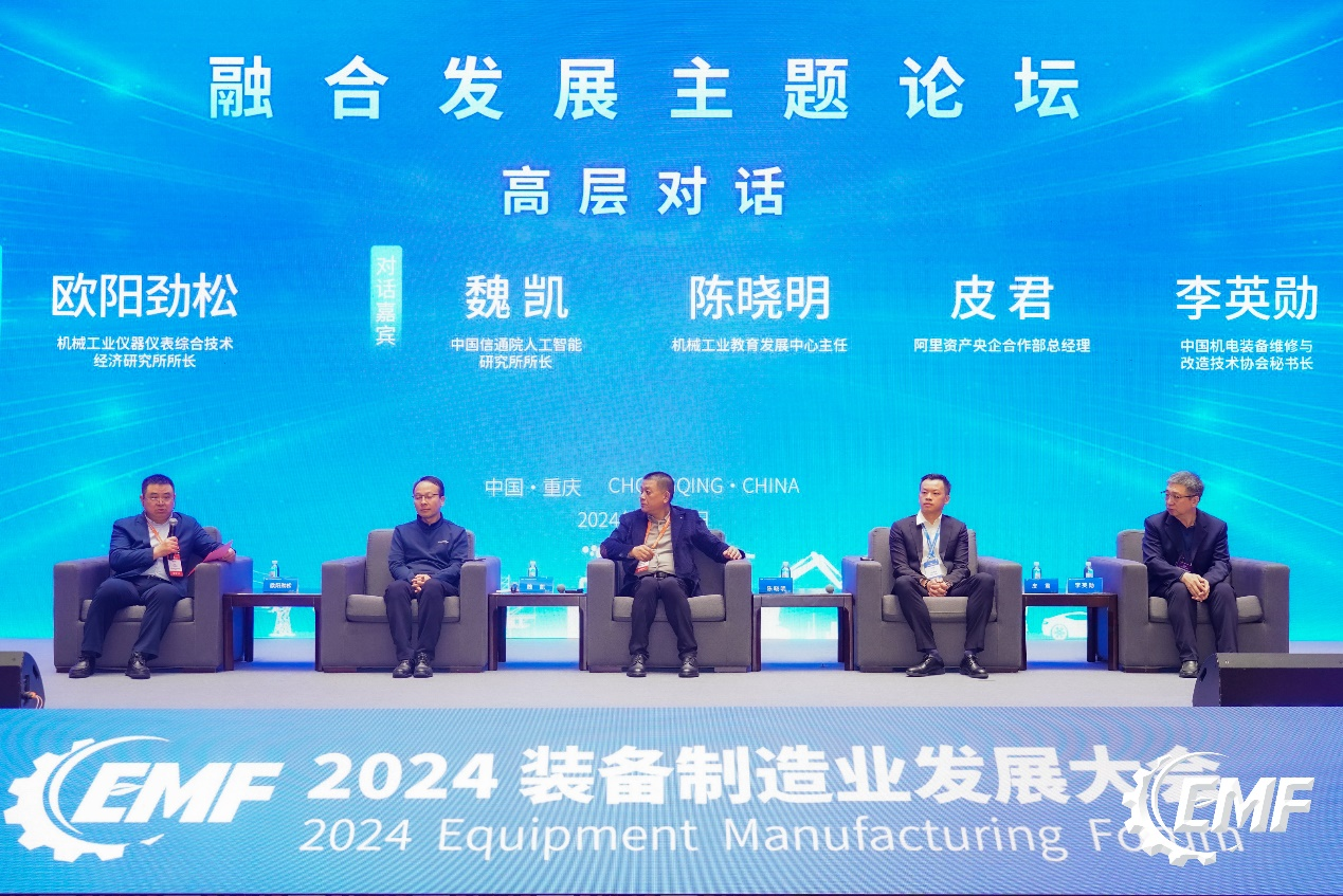 高層對話環(huán)節(jié)將論壇推向了高潮。中國信通院人工智能研究所所長魏凱、機械工業(yè)教育發(fā)展中心主任陳曉明、阿里資產(chǎn)央企合作部總經(jīng)理皮君以及中國機電裝備維修與改造技術(shù)協(xié)會秘書長李英勛等行業(yè)領(lǐng)袖圍繞推動裝備制造業(yè)與新技術(shù)融合發(fā)展、深化產(chǎn)教融合與校企合作、數(shù)字化平臺助力供應(yīng)鏈安全高效發(fā)展以及推動裝備后市場產(chǎn)業(yè)發(fā)展等議題展開了深入交流和熱烈討論,為裝備制造業(yè)的未來發(fā)展提供了寶貴的思路和建議。