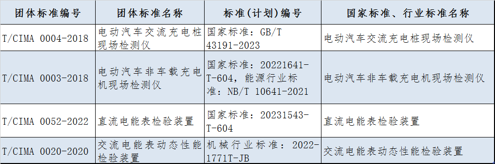 近年來,中國儀器儀表行業協會陸續發布實施了《智能變電站數字化采樣值網絡傳輸檢測規范》《質子轉移反應質譜儀》《臥式拉力試驗機》等60多項團體標準,其中多項團體標準已陸續被國家標準、行業標準采信。據協會統計,已獲得標準(計劃)編號的標準見下表: