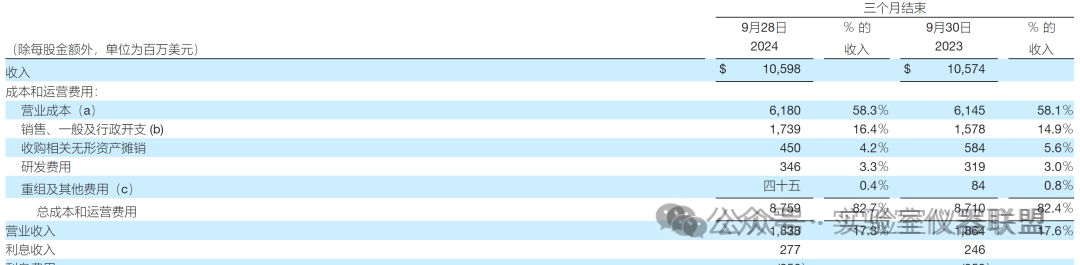 2024 年第三季度調整后每股收益為 5.28 美元,而 2023 年第三季度為 5.69 美元。2024 年第三季度調整后的營業收入為 23.6 億美元,而去年同期為 25.6 億美元。調整后的營業利潤率為 22.3%,而 2023 年第三季度為 24.2%。
