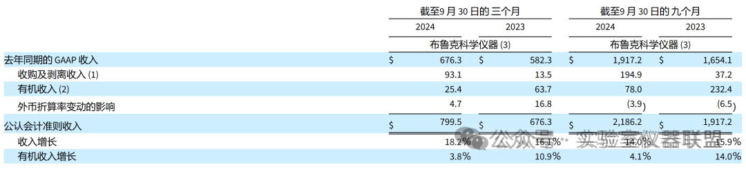 根據報告,布魯克 2024 年第三季度的收入為 8.644 億美元,與 2023 年第三季度的 7.428 億美元相比增長 16.4%。2024 年第三季度,收入同比有機增長 3.1%,固定匯率 (CER) 收入增長 15.7%。收購收入增長 12.5%,外幣折算產生 0.7% 的有利影響。