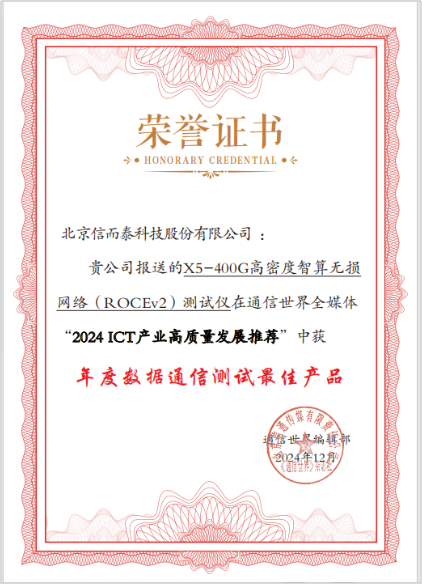 當(dāng)前,ICT行業(yè)正經(jīng)歷著前所未有的變革與發(fā)展。隨著5G技術(shù)的廣泛應(yīng)用、云計(jì)算的蓬勃興起以及人工智能與物聯(lián)網(wǎng)的深度融合,行業(yè)競爭愈發(fā)激烈,ICT企業(yè)逐鹿行業(yè)前沿,或攻堅(jiān)技術(shù),或打磨產(chǎn)品,或拓展應(yīng)用,全力探索高質(zhì)量發(fā)展之路。12月18日,2025 ICT行業(yè)趨勢年會在北京舉辦。會議期間,通信世界“2024 ICT產(chǎn)業(yè)高質(zhì)量發(fā)展推薦”正式發(fā)布。“X5-400G高密度智算無損網(wǎng)絡(luò)(ROCEv2)測試儀”入選“2024 ICT產(chǎn)業(yè)高質(zhì)量發(fā)展推薦”。