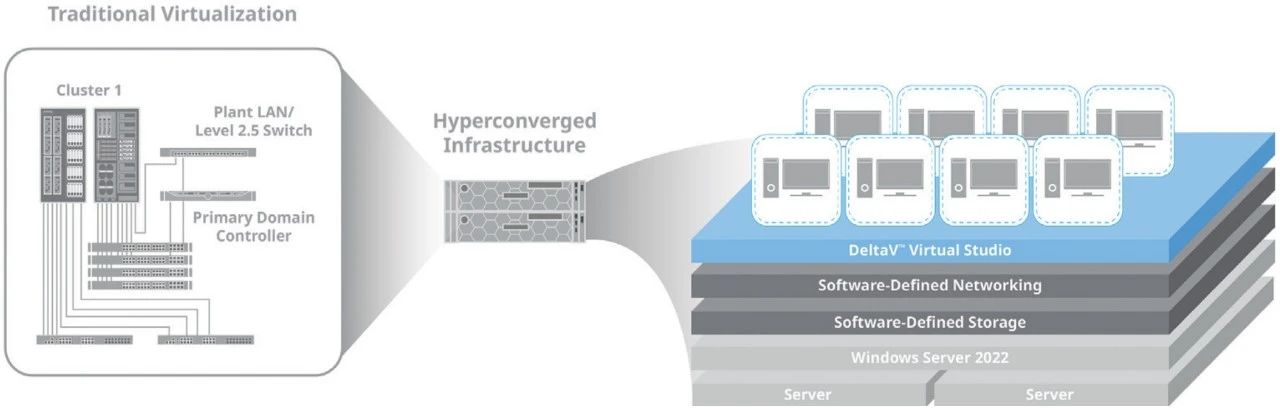 ▲圖1:超融合基礎架構(HCI)是軟件定義平臺的構建塊,結合了傳統(tǒng)和實時工作負載。艾默生的無界自動化愿景就是一種軟件定義的控制技術,該模型旨在通過消除專用控制硬件,使項目更容易執(zhí)行,更具成本效益,從而實現更靈活、可擴展、面向未來的運營。