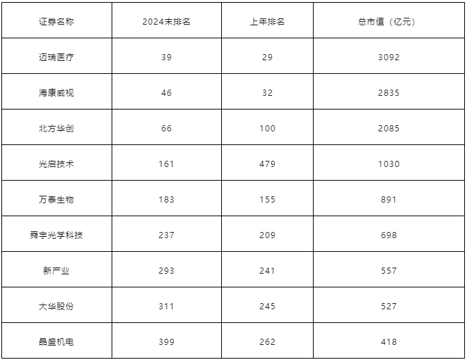 2024年股市圓滿收官,中國上市公司市值500強榜單隨之揭曉。數(shù)據(jù)顯示,2024年市值500強企業(yè)平均市值、中位數(shù)市值和最低市值分別為1483億元、651億元和344億元,較2023年分別增長241億元、60億元和36億元。 經(jīng)小編統(tǒng)計,多家儀器企業(yè)登榜,涵蓋邁瑞醫(yī)療(生命科學儀器領域)、海康威視(光學儀器領域)及北方華創(chuàng)(半導體設備供應商)等,展現(xiàn)了其在各自專業(yè)領域的卓越成就。