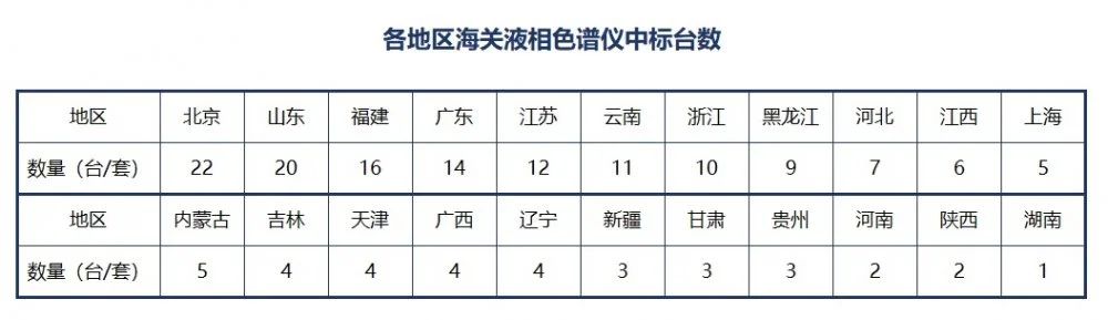 從地域分布來看,液相色譜儀的采購量呈現出鮮明的區域特征。東部沿海地區成為本次設備更新的采購主力軍,而中西部地區在此次統計中暫未展現出相關需求。