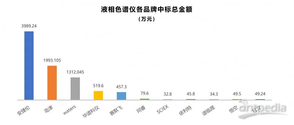 在品牌競爭的激烈角逐中,安捷倫憑借強大的技術優勢和卓越的品牌影響力,成為本次設備更新的最大贏家,其中標數量接近總量的一半。島津和Waters分別以36臺(套)和24臺(套)的中標數量,位列第二和第三。