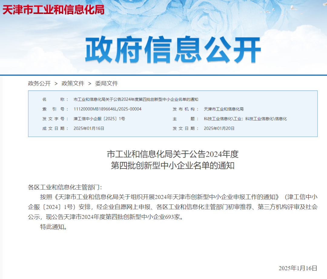 2025年1月20日,天津市經(jīng)濟(jì)和信息化局正式發(fā)布了《2024年度第四批創(chuàng)新型中小企業(yè)公告名單》,東西分析儀器(天津)有限公司(簡稱:東西分析)順利通過了“創(chuàng)新型中小企業(yè)”認(rèn)定,成功入選榜單。這不僅是對“東西分析”持續(xù)創(chuàng)新能力的認(rèn)可,也標(biāo)志著其在行業(yè)中的競爭力和影響力的提升。