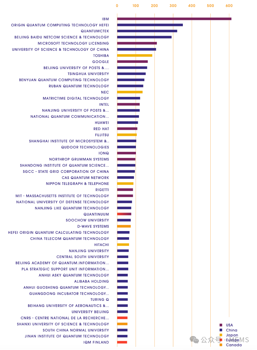 全球量子技術(shù)有效專利族主要申請人(按國家/地區(qū)細(xì)分)